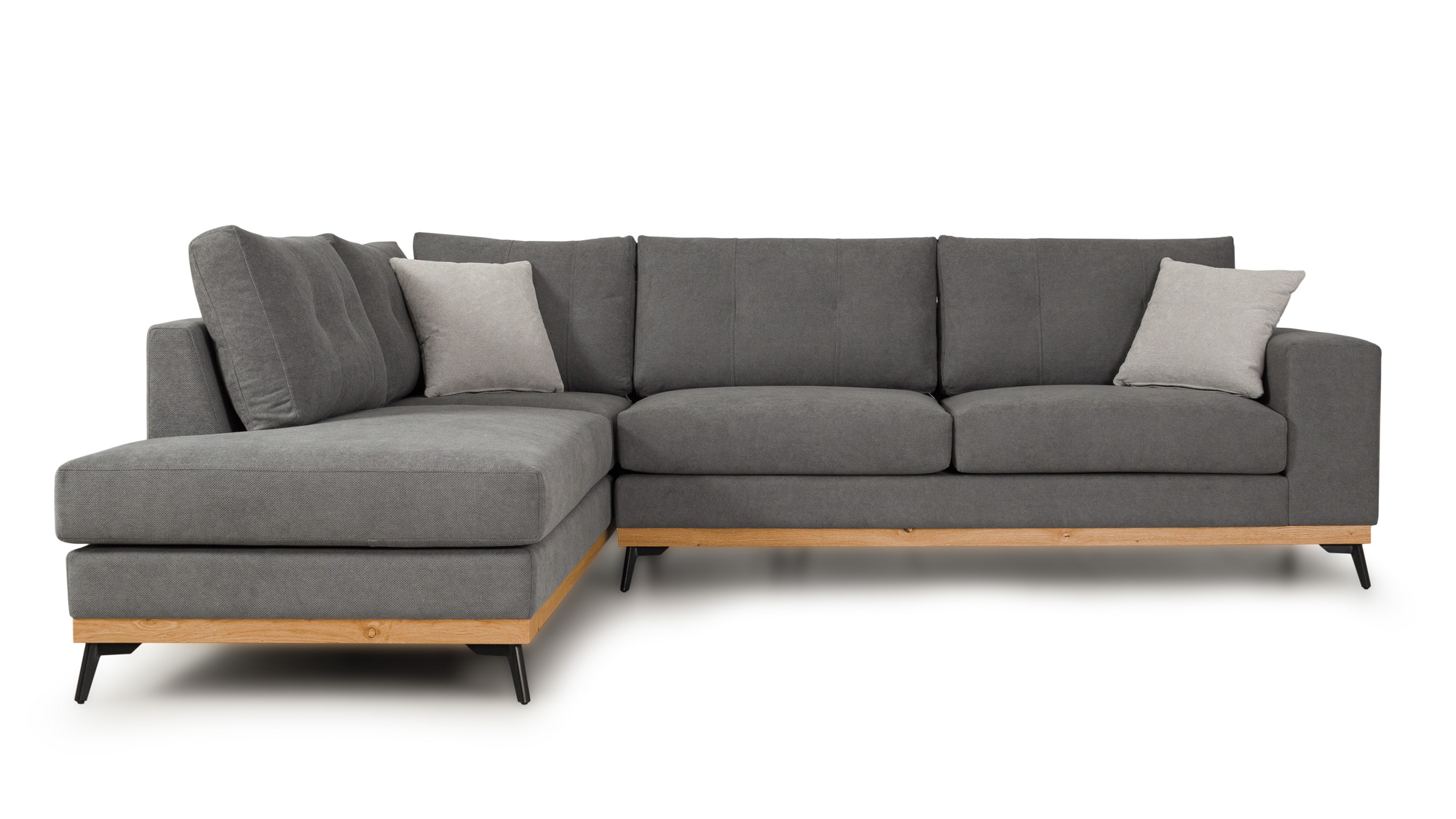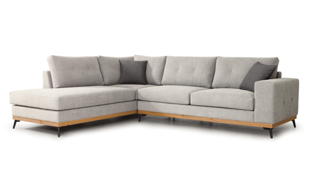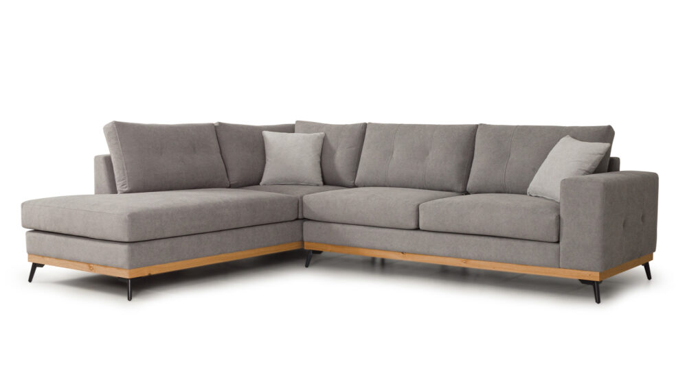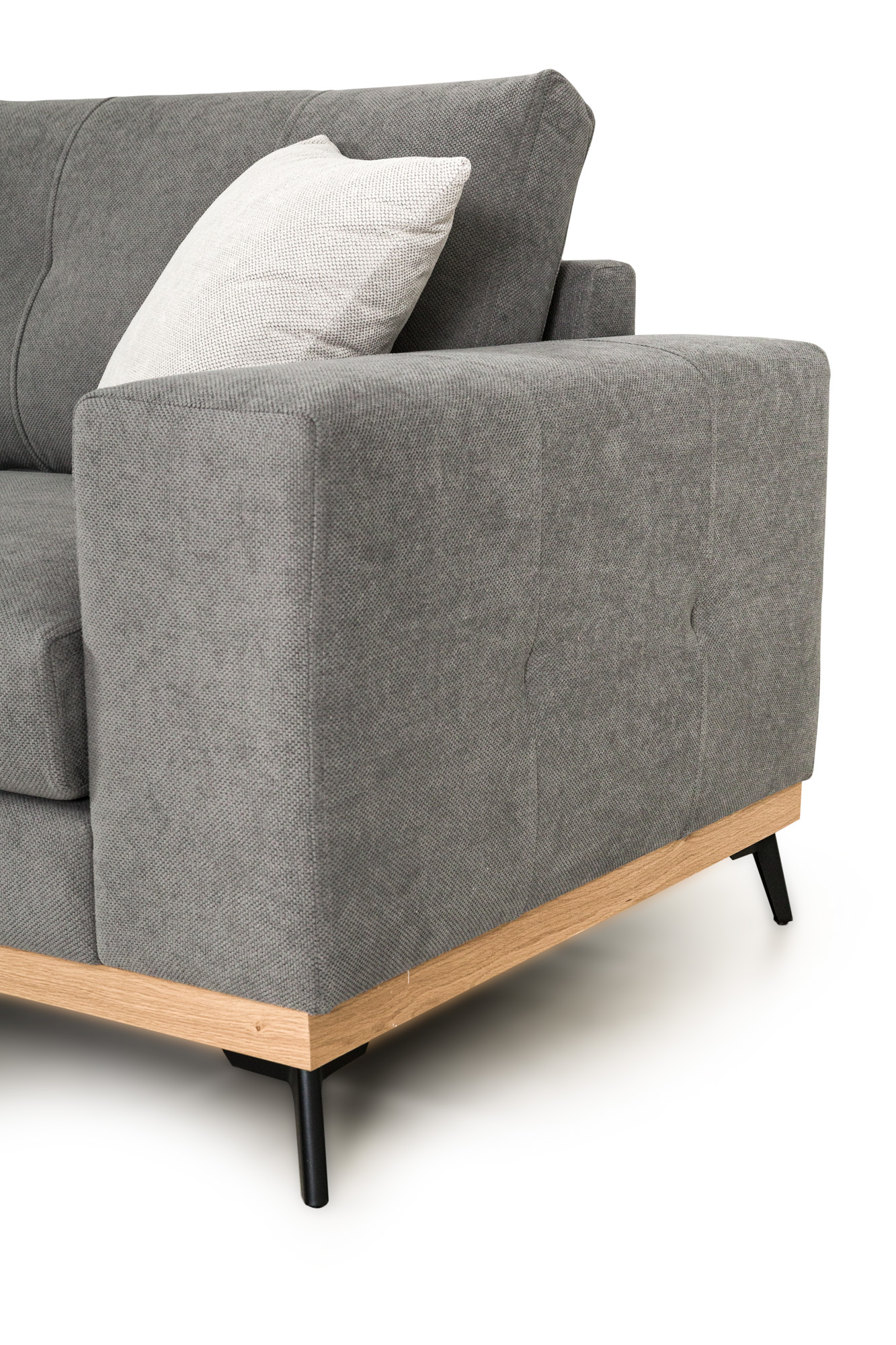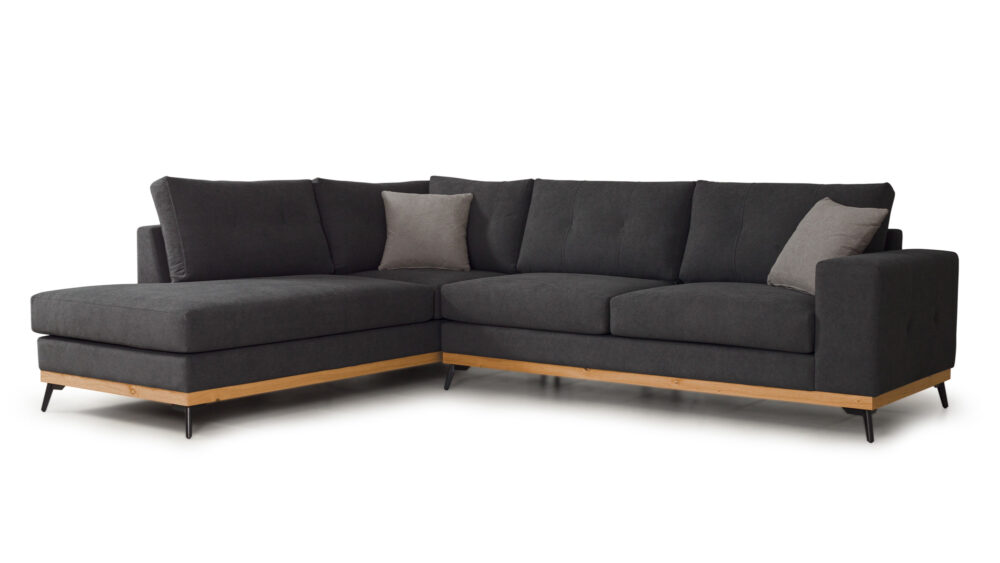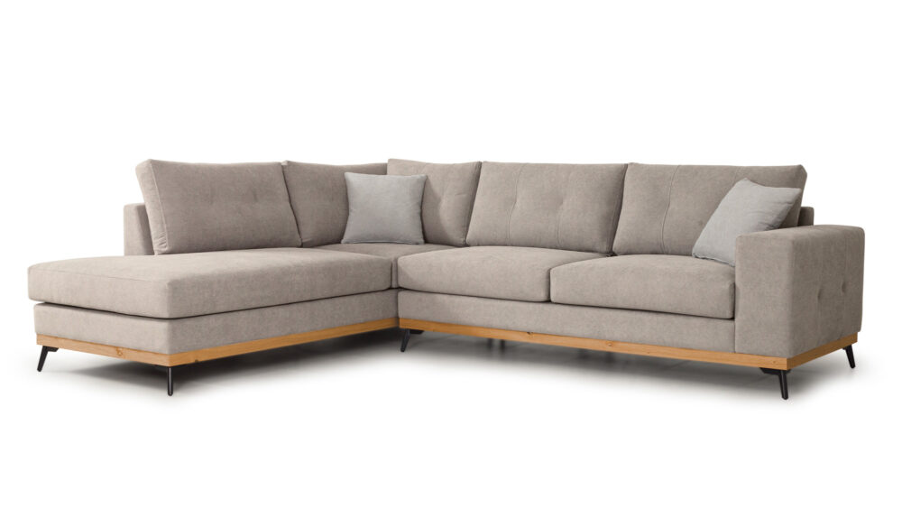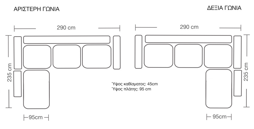 Από σκελετό μοριοσανίδας, ξύλο λεύκας και επένδυση MDF + αφρολέξ, ποδαρικό από υψηλής ποιότητας πλαστικό με μεταλλικό φινίρισμα, μαξιλάρι καθίσματος αφρολέξ 400άρι plus, με διπλή βάτα ενισχυμένη με ελαστικές ίνες και μαξιλάρι πλάτης από 100% καθαρή σιλικόνη. Μαζί και 2 μαξιλάρια φιγούρας. Αφαιρούμενα καθίσματα από ύφασμα Easy Clean (90% αδιάβροχο).