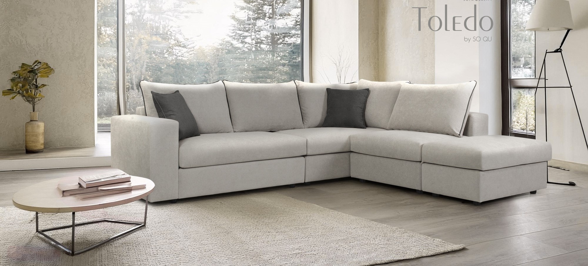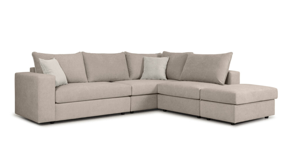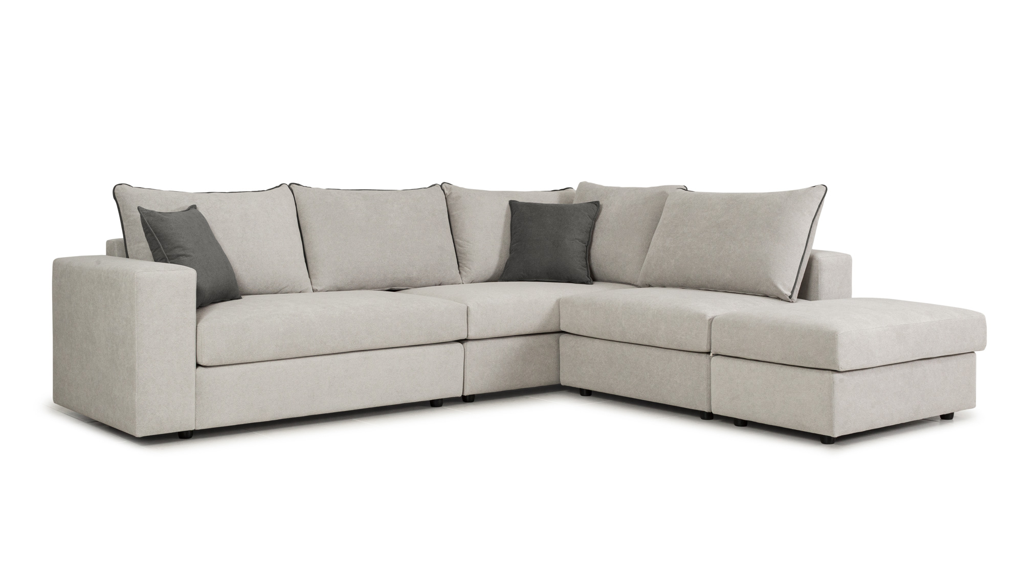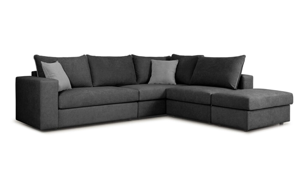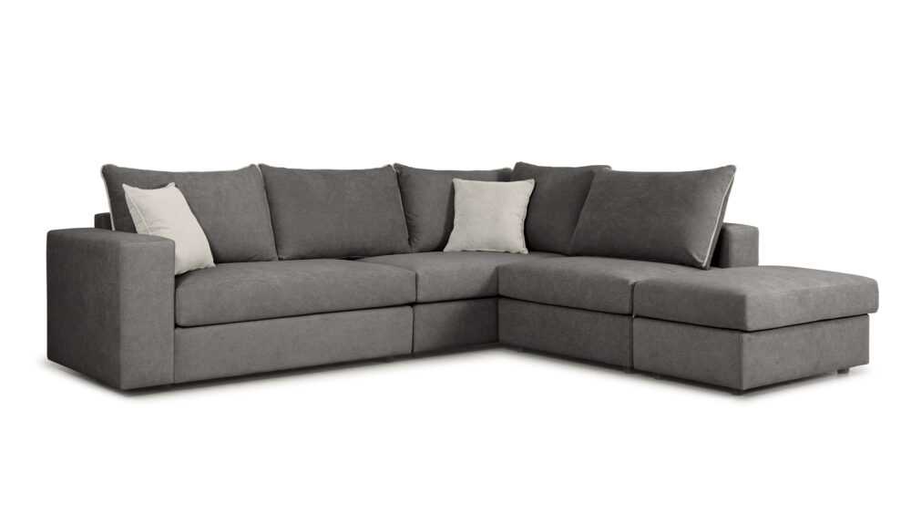 Πολυμορφικός γωνιακός καναπές διάστασης 3,00 Χ 2,50 Χ 95. Αφαιρούμενα καθίσματα και πλάτες από ύφασμα Easy Clean (90% αδιάβροχο).
